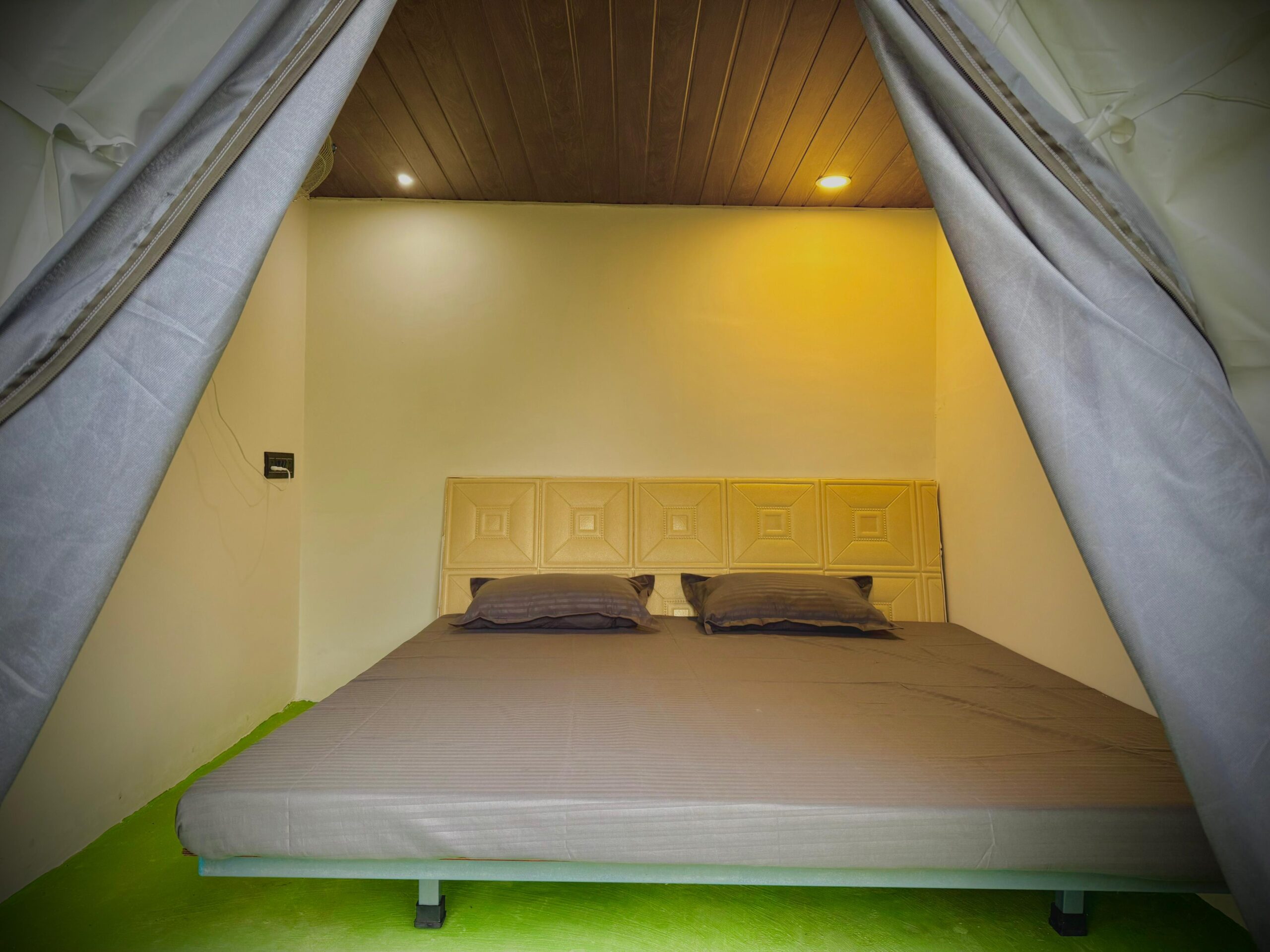 Our Triangle Huts provide the most premium stay with a stunning A-frame design, wooden interiors, and glass fronts that open to beautiful lakeside views. Perfect for couples and families looking for privacy, comfort, and a luxury glamping experience in nature.